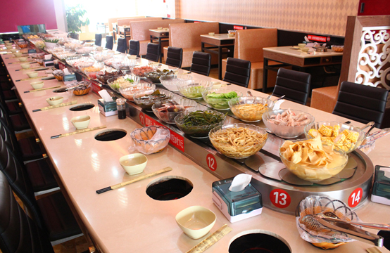 提高食客的食欲。4、旋轉(zhuǎn)小火鍋設(shè)備可以讓食客清楚選擇想點的餐點,而不再只是看不到實際餐點的菜單。5、點餐時食客不用再等待了;不用離開座位端盤取菜了,想吃多少就多少,