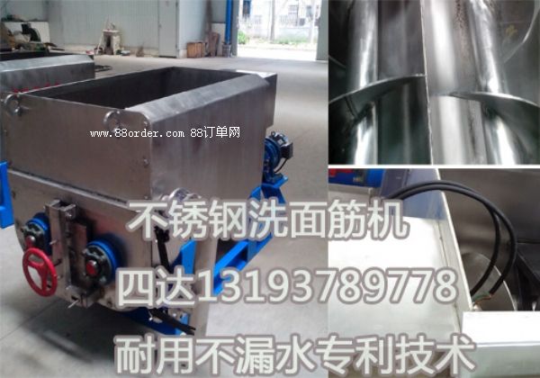 四達(dá)面筋機(jī)的結(jié)構(gòu)是在一個雙u型的機(jī)殼內(nèi),裝有2個旋向相反的螺旋推進(jìn)攪拌器,轉(zhuǎn)速為40轉(zhuǎn)/分,推進(jìn)方向可調(diào),排漿時把面筋團(tuán)推向后方,漿料有3層出口,從上往下,依次排出,待洗滌結(jié)束,漿料排完后,啟動螺旋軸,把面筋從機(jī)殼端面出口,把濕面筋推出。