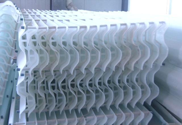 本產(chǎn)品葉片采用最新復(fù)合材料制作而成的,高強(qiáng)度、耐酸、耐堿、耐高濃度氯離子、耐磨、表面光滑等優(yōu)點(diǎn)。并能在150℃煙氣溫度工況下連續(xù)使用,當(dāng)脫硫除塵系統(tǒng)出現(xiàn)故障,如雙堿法或其他脫硫工藝管道出現(xiàn)結(jié)垢或是循環(huán)泵出現(xiàn)故障,使吸收塔內(nèi)的煙氣溫度急速升高,如采用pp(聚丙。┏F器就會出現(xiàn)整體或者局部坍塌,本產(chǎn)品最大能承受150℃煙氣溫度連續(xù)使用,即使脫硫系統(tǒng)出現(xiàn)故障煙氣溫度升高,本產(chǎn)品除霧器也能正常使用,不會影響整個脫硫系統(tǒng)正常運(yùn)行。