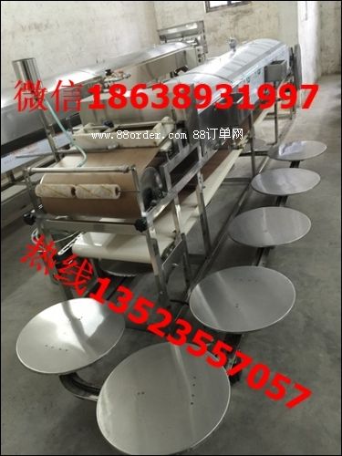 全自動(dòng)搟面皮機(jī):搟面皮機(jī)是需要洗面、沉淀、發(fā)酵,用發(fā)酵的面漿來生產(chǎn)的,搟面皮流傳于陜西,是夏天涼拌的極品,搟面皮俗稱:面皮,釀皮,花紋面皮等名字,搟面皮機(jī)器和涼皮機(jī)器還是有表面的區(qū)別,搟面皮表面是帶花紋的。