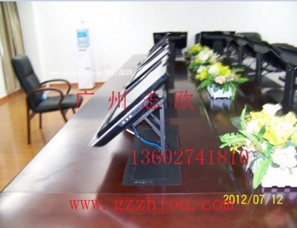 高檔顯示屏升降器產(chǎn)品描述:主要用于大型會議室,學(xué)術(shù)報告廳,展廳內(nèi)。當(dāng)開會時,需要使用顯示器時,隱藏在會議桌內(nèi)部的升降機(jī)把顯示器從會議桌下面升到桌面、當(dāng)不使用顯示器時,升降機(jī)自動下降,顯示器隱藏在會議桌內(nèi),起到防塵,防盜,保持桌面平整美觀。