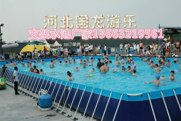 支架游泳池具有移動方便,操作靈活,使用方便,可在大小體育場,休閑度假村,旅游景點(diǎn)等多種場地。最新國內(nèi)獨(dú)創(chuàng)首家采用國外熱合工藝制作大型支架水池,熱合工藝制作的大型支架水池具有耐磨耐壓,不裂縫不開膠等特點(diǎn),整個水池上無一滴膠,支架水池布采用的底部0.85pvc,支架采用采用國標(biāo)焊管壁厚2.5,高品質(zhì)的移動式游泳池?fù)碛?0年的超長使用壽命。