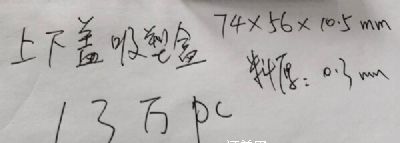 天地蓋pvc透明吸塑盒;規(guī)格;74*56*10.5mm,料厚0.3mm。采購數(shù)量13萬pc