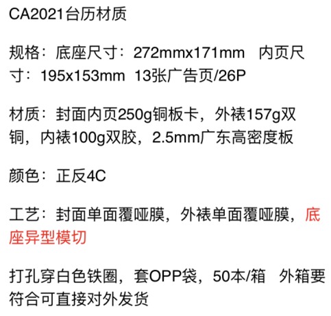 - 訂單名稱(chēng):臺(tái)歷定做