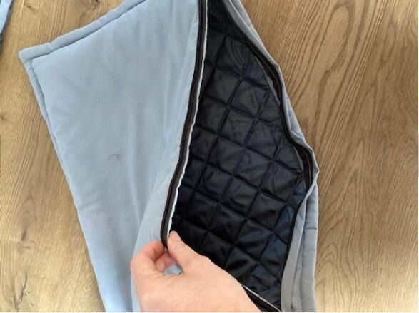枕頭 55 x 37 cm,表面是棉的,里面有一個復(fù)合的層,如圖,再加一個充氣的枕頭,印刷一色在毯子上,一色在枕頭上