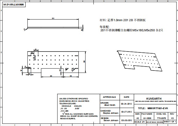 求購 201不銹鋼鈑金加工n 1200套(見附圖,共2張)