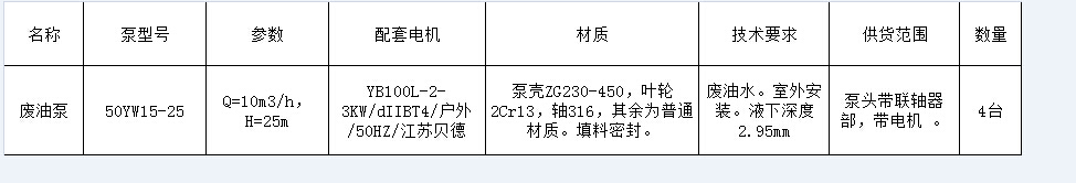 產(chǎn)品名稱:yw廢油泵 采購量:4臺 產(chǎn)品描述:按照要求來,如圖