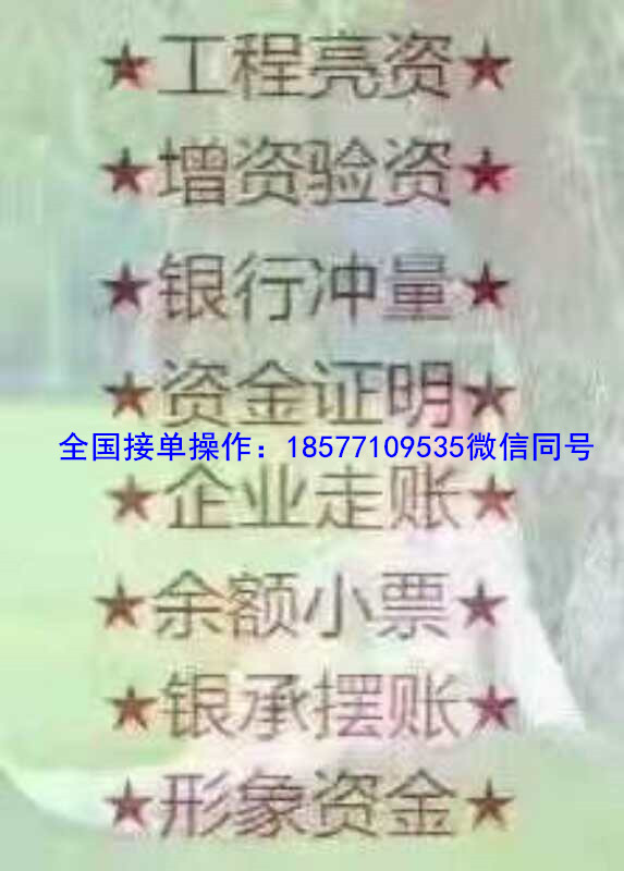 您接工程、談項(xiàng)目、投標(biāo)需要啟動(dòng)資金嗎?您批地、批車(chē)、批銅、批油需要顯示資金實(shí)力嗎?本公司專業(yè)提供:擺賬亮資、網(wǎng)銀顯帳、資金證明、余額小票、流水對(duì)賬單!形象資金(企業(yè)上盤(pán)增值,激活民族沉淀資金)一次合作,終身朋友,歡迎垂詢18577109535微信同號(hào)銀行保函(工程投標(biāo)、工程預(yù)付款、工程履約、經(jīng)濟(jì)合同履約、財(cái)產(chǎn)保全、工程尾數(shù)履約、原材料賒購(gòu)、農(nóng)民工資支付保函,預(yù)付款擔(dān)保,質(zhì)量保修保證擔(dān)保,合同采購(gòu)安裝,產(chǎn)品質(zhì)量擔(dān)保,供貨期限擔(dān)保):免保證金,簡(jiǎn)單資料,低手續(xù)費(fèi),快速出保函,量大優(yōu)惠,相比企業(yè)自行去銀行操作成本更低更省事。